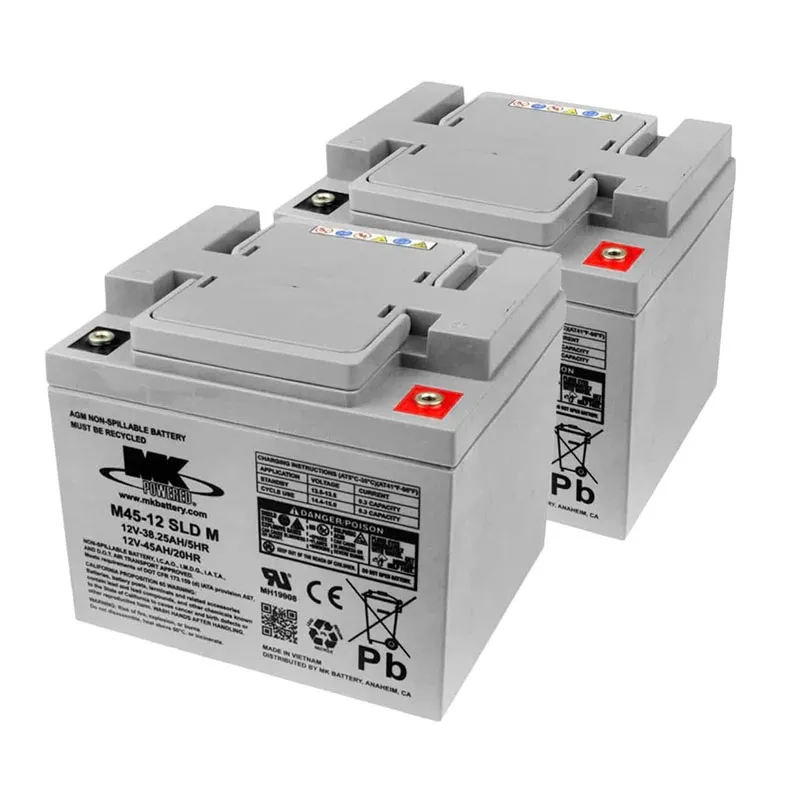 45 Ah akumulator MK Battery, charakteryzujący się wytrzymałością i dużą liczbą cykli roboczych.