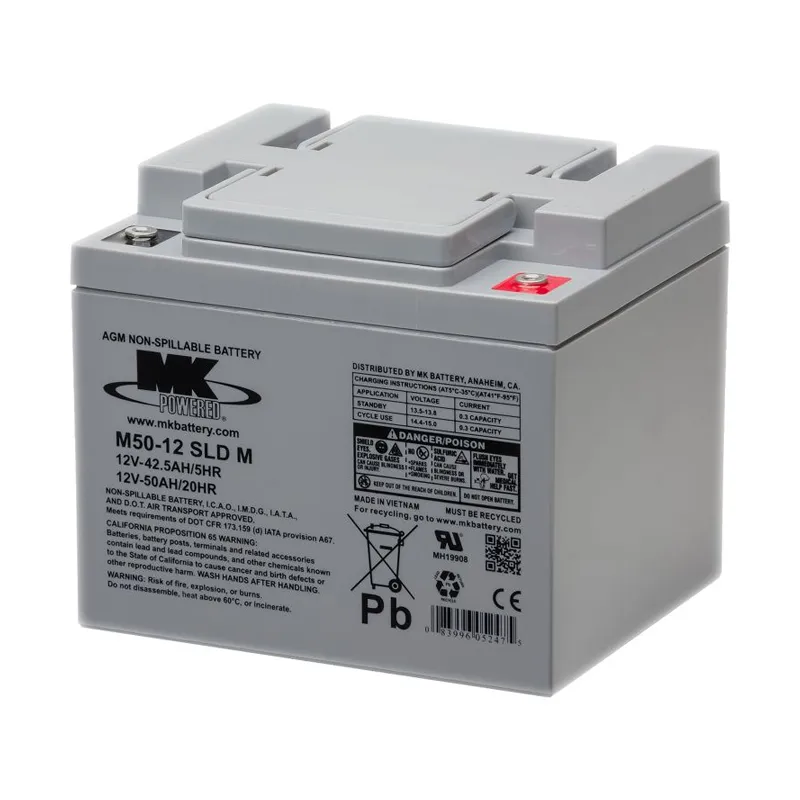 MK Battery M50 o pojemności 50 Ah, odporny na temperatury od -60°C do 60°C. Przeznaczony do pracy cyklicznej.
