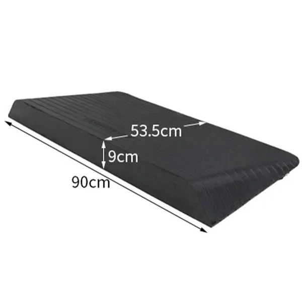Rampy gumowe REHA-ACTIV są produkowane w 100% z gumy pochodzącej z recyklingu opon samochodowych. Rampa o wysokości 9,0 cm zapewnia bezpieczny wjazd na większe progi, a antypoślizgowa powierzchnia gwarantuje bezpieczeństwo użytkowania nawet w trudnych warunkach pogodowych. Dzięki możliwości przycięcia rampy do odpowiednich wymiarów, można ją dostosować do indywidualnych potrzeb. Udźwig rampy wynosi 1000 kg, co czyni ją odpowiednią dla wielu zastosowań, zarówno wewnętrznych, jak i zewnętrznych.