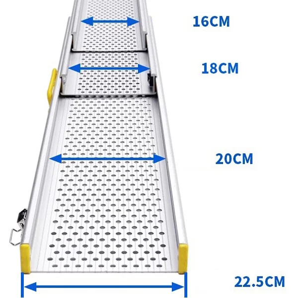 Szyny perforowane REHA-ACTIV to wysokiej jakości szyny podjazdowe dla wózków inwalidzkich. Powierzchnia perforowana zapewnia doskonałą przyczepność i ułatwia oczyszczanie szyn. Szyny mają możliwość ustawienia dowolnej długości od 128 do 300 cm dzięki bocznym zatrzaskom, które umożliwiają blokadę w wybranej długości. Są wyposażone w ergonomiczne rączki, co ułatwia ich transport i przenoszenie. Wysokie ściany boczne (5 cm) zabezpieczają wózek przed zsunięciem. Szyny są szybkie i łatwe w użytkowaniu, a dzięki antypoślizgowej powierzchni zapewniają długotrwałe, bezpieczne użytkowanie. Zagięta górna część rampy oraz gumowa podkładka zapewniają lepsze dopasowanie do powierzchni, co zwiększa stabilność podczas użytkowania.