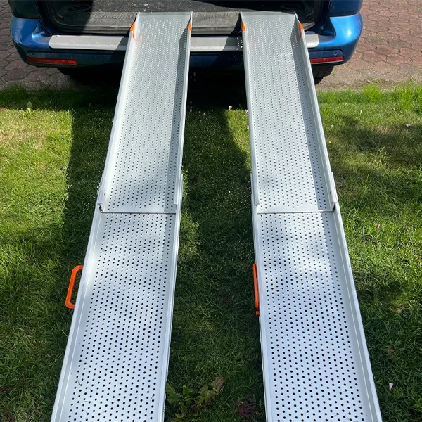Perforowane, nowoczesne szyny podjazdowe o długości 360 cm, składane trzy razy.